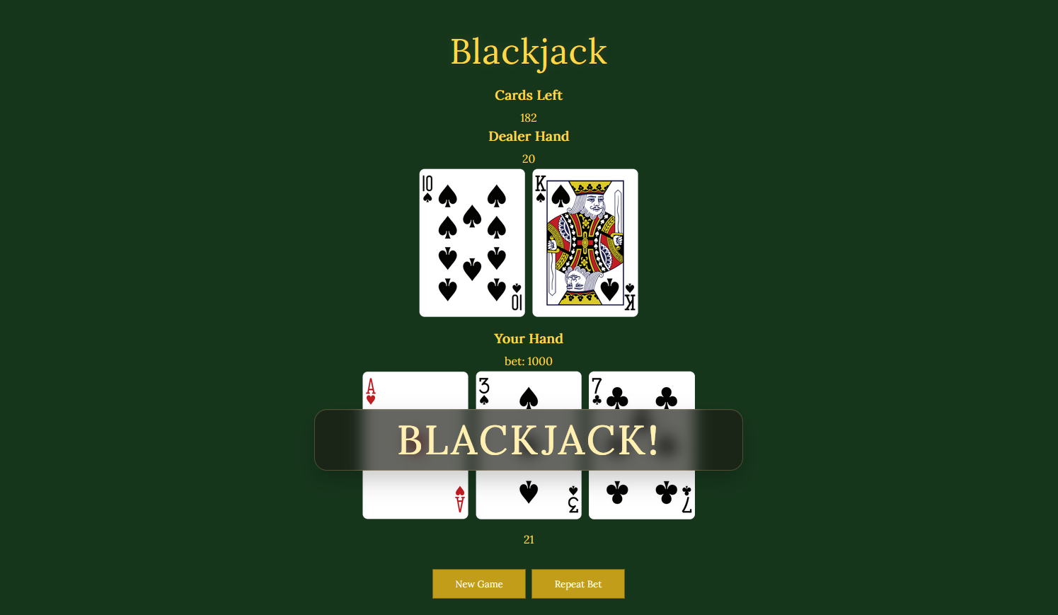 A Blackjack app built around maintaining complex game states, advanced player actions including split and double, betting logic, and side bet mechanics.
